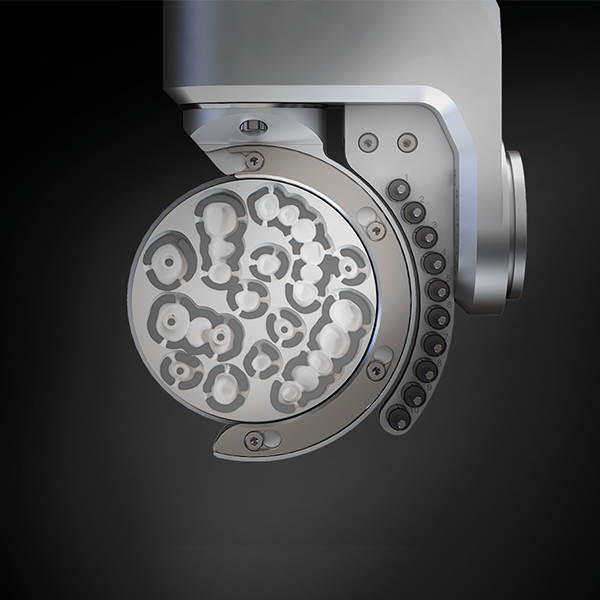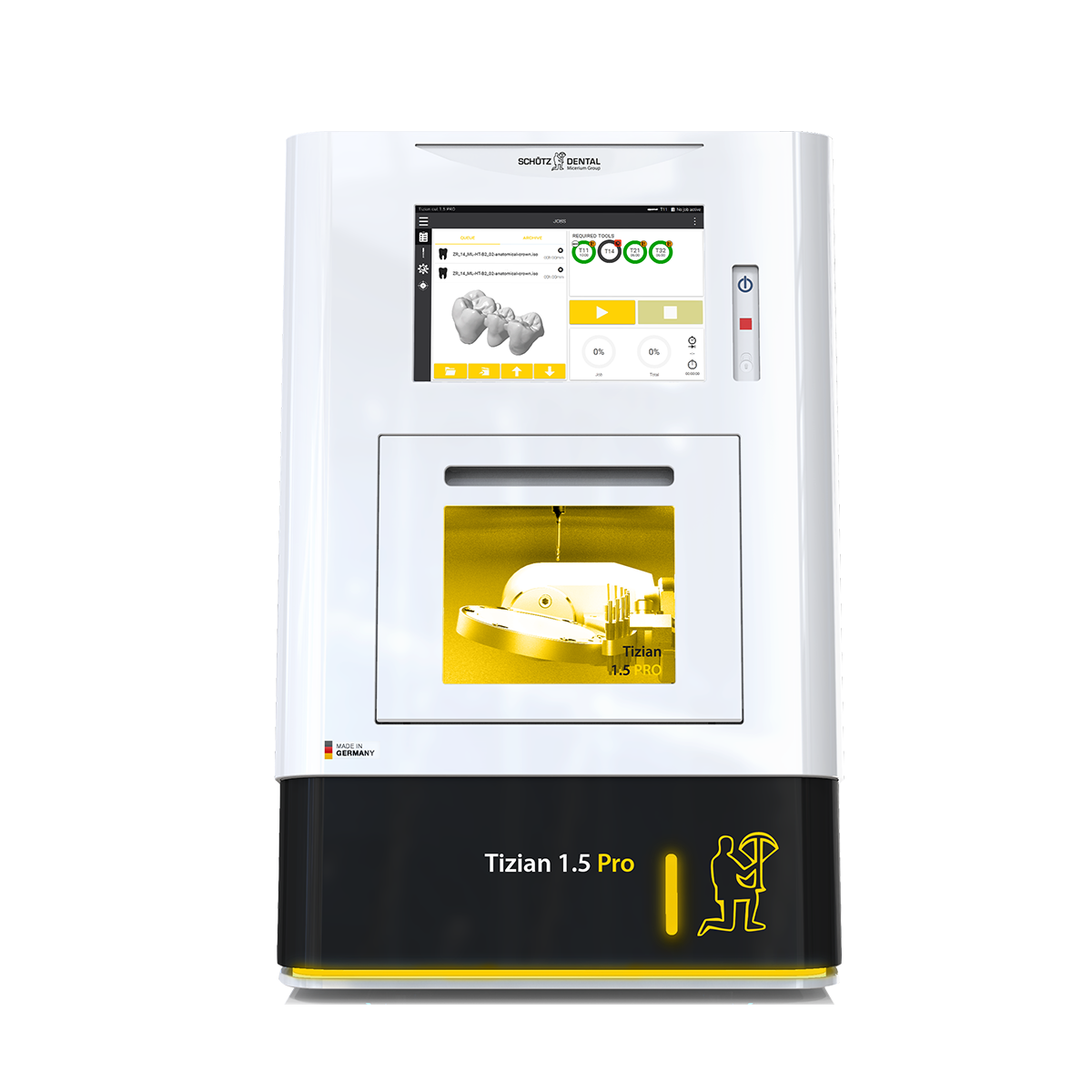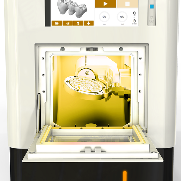Durch den stabilen Mono-Block-Gusskörper wird eine sehr präzise Bearbeitung mit hoher Oberflächengüte ermöglicht. Geringe Standfläche und 5-Achs-Simultan-Technologie mit hohen Freiheitsgraden bieten ein einmaliges Verhältnis von Maschinengröße, Funktionalität und Performance. Dank Touchscreen-Display lässt sich das System intuitiv grafisch bedienen. Die Temperaturkompensation ermöglicht nahezu jeden Aufstellungsort für die Nass- und Trockenbearbeitung. Umfangreiche Adapter- und Haltesysteme für Premilled -Abutments, Block-Halter und halboffene Rohlingshalter (C-Clamp) für eine stirnseitige Bearbeitung sind ergänzend erhältlich. Das leistungsstarke System wird komplettiert durch Ionisator für PMMA und einem Kühlsystem.